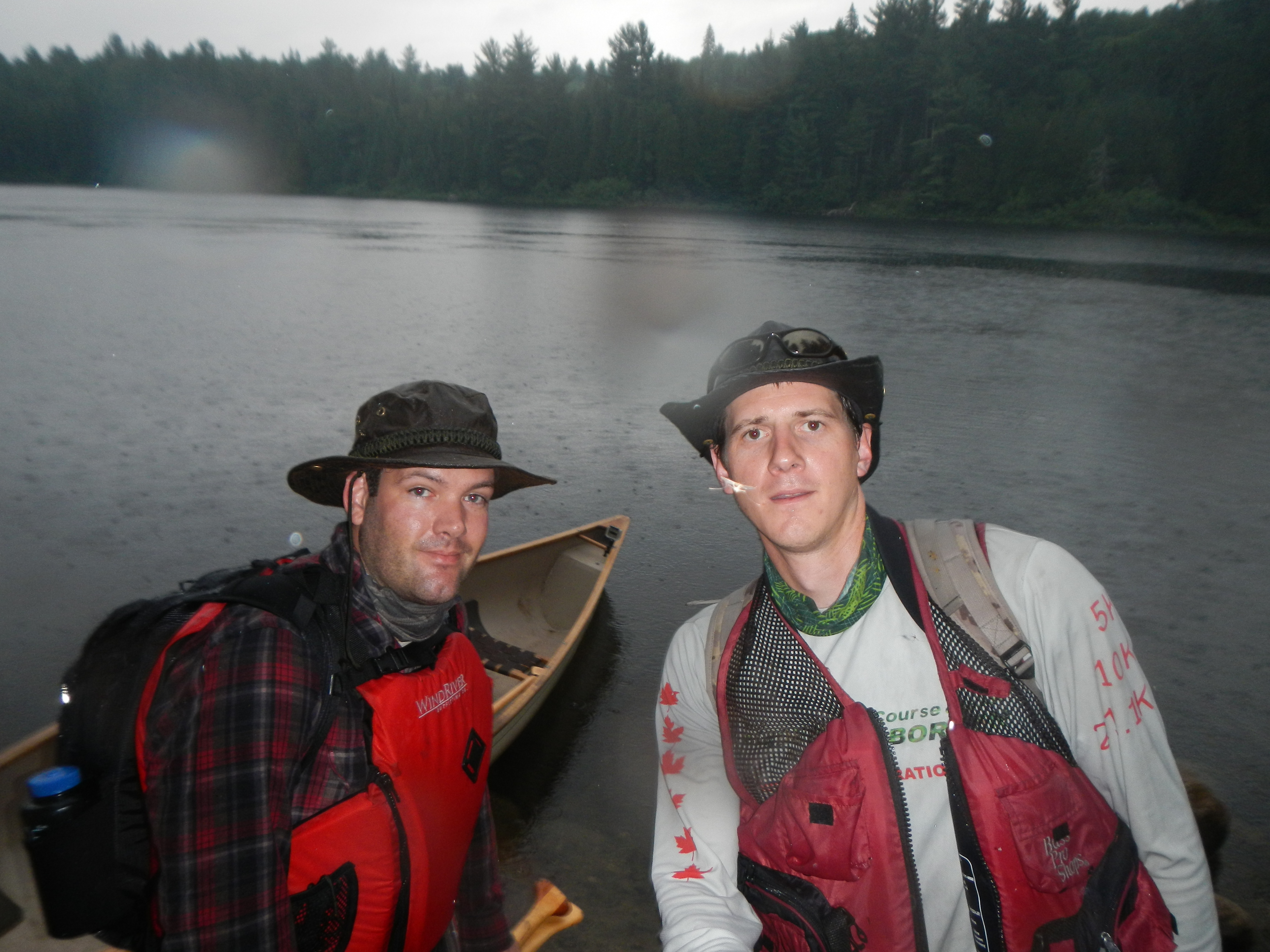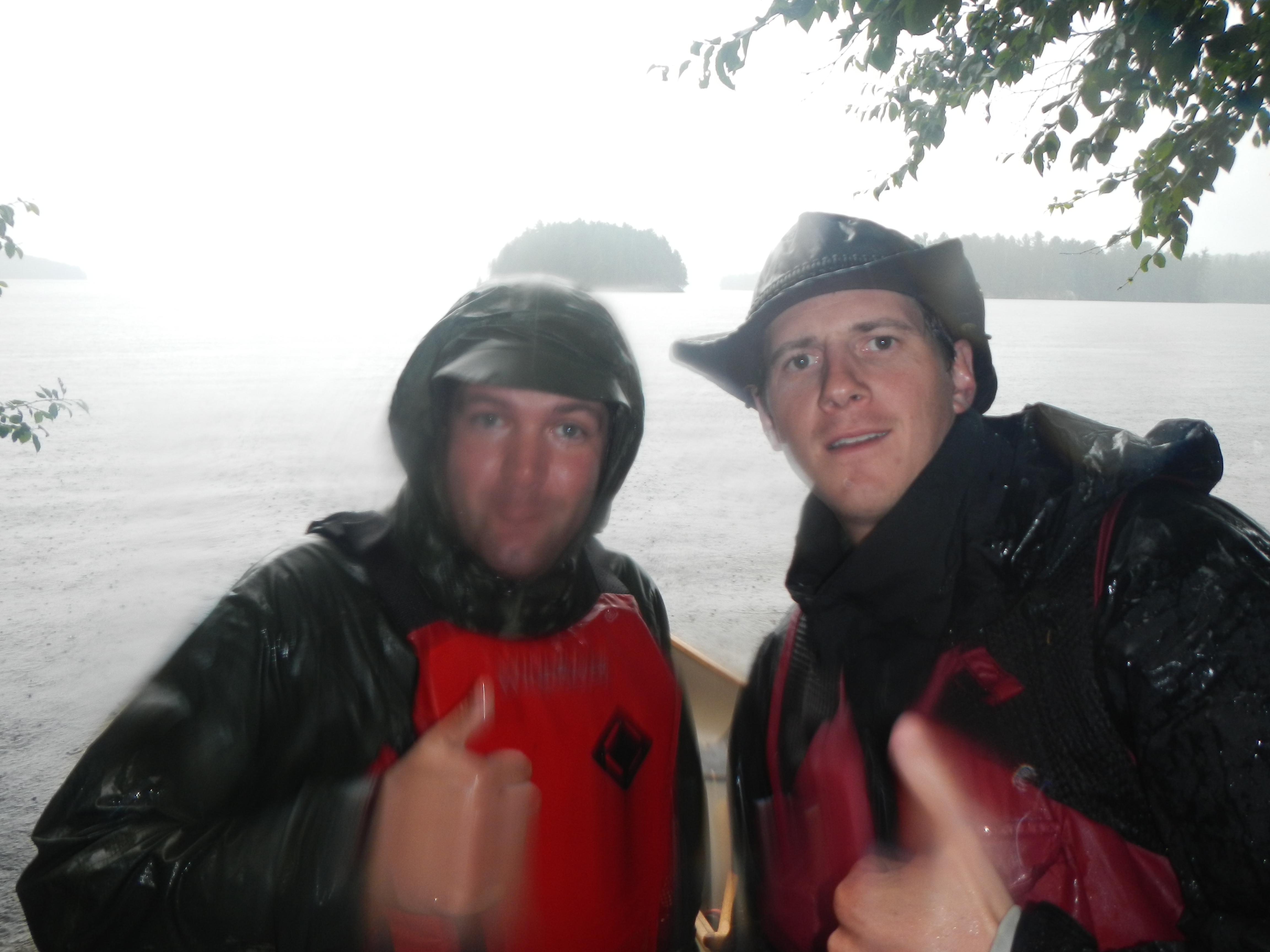 Mark and I caught in a down pour heading from Longer Lake to Big Trout Lake.